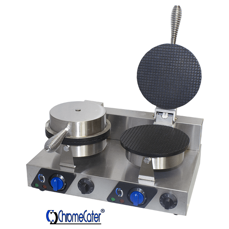 Suppliers of the double Cone Baker Machine. Contact ChromeCater today. Did you know you can now make your own Sugar Cones.