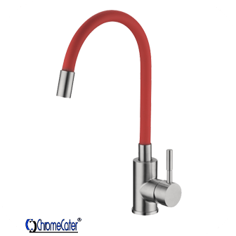 Kitchen Sink Mixer Brushed S/Steel Body with Flexible Red Silicone Hose.